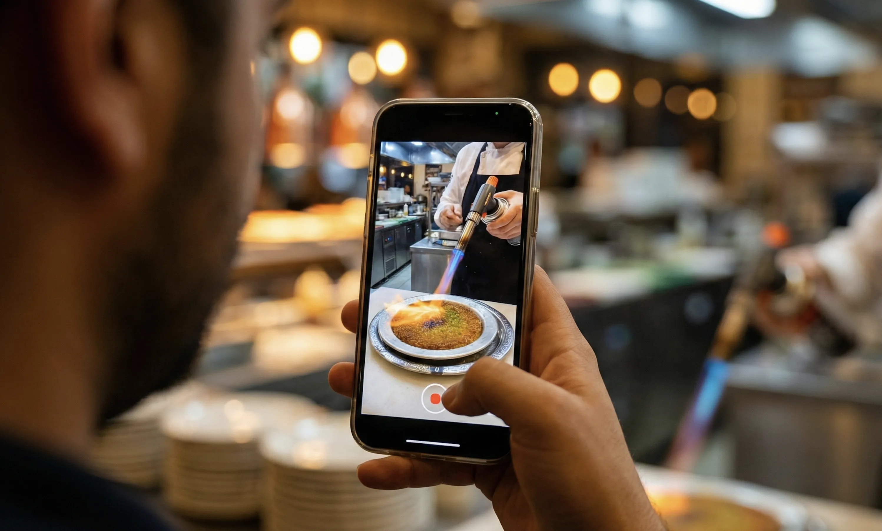 I watched him post a photo of a beautifully plated pasta. Nice lighting. Good composition. It got 47 likes. Then I asked him: "When you make that crunchy kunefe at the table with the torch, do you ever film it?"